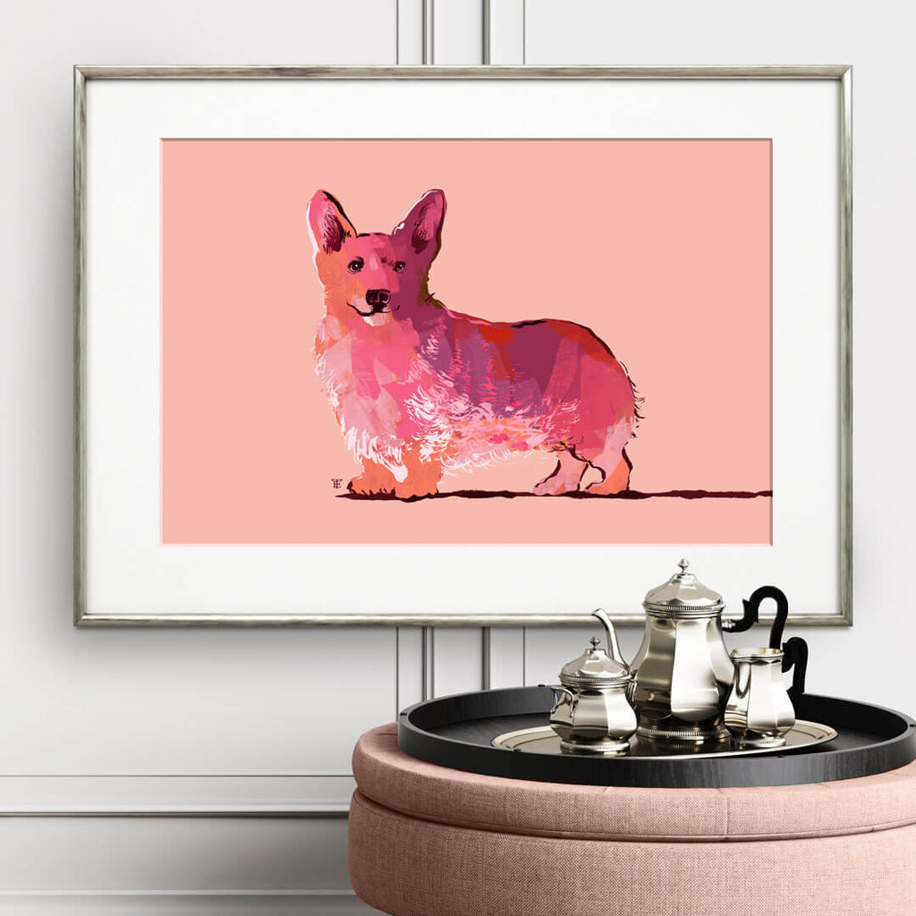 It's not hard to see why a certain Queen adores the Pembroke Welsh Corgi. They're playful, fun, and clever. I made this modern Corgi art print in daring colors as an homage to this delightful breed. I hope it brings a touch of nobility to your home.