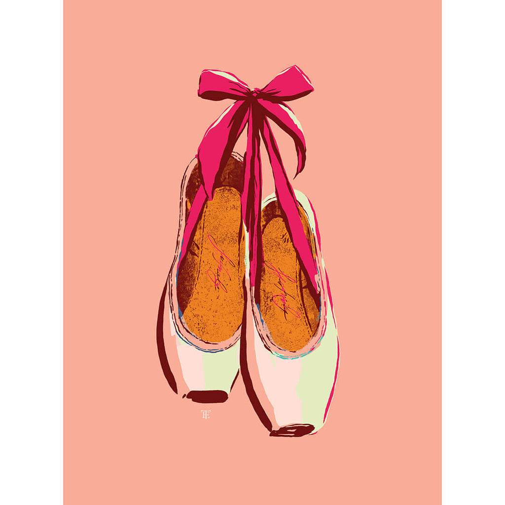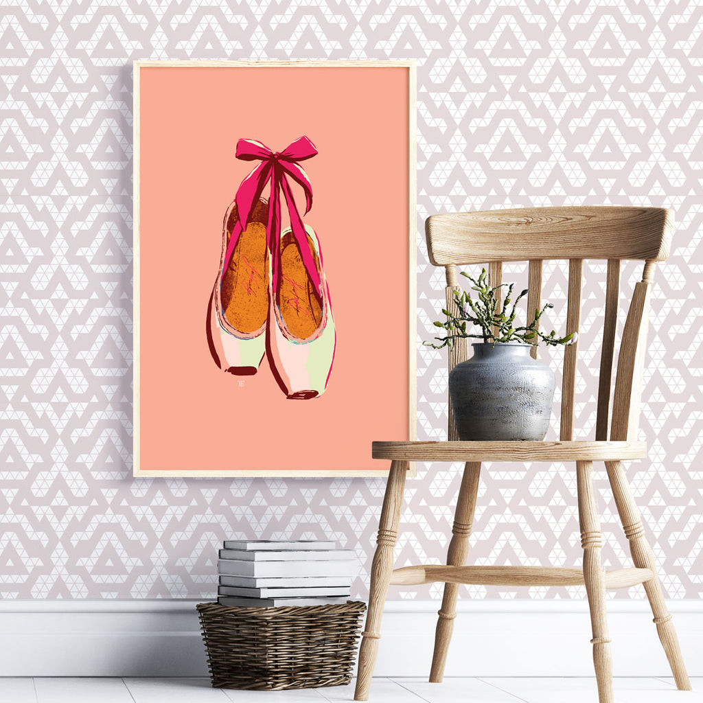 I'm just going to go ahead and come clean about this: I have two left feet. Always have. I'd end up on the back row of any dance class, and I'm not tall. But I love watching people who can dance, even though I sometimes feel a little pang of envy. This pointe shoes art print is here to celebrate the tiny dancer in your life, and is perfect for baby girl's nursery or big girl's room.