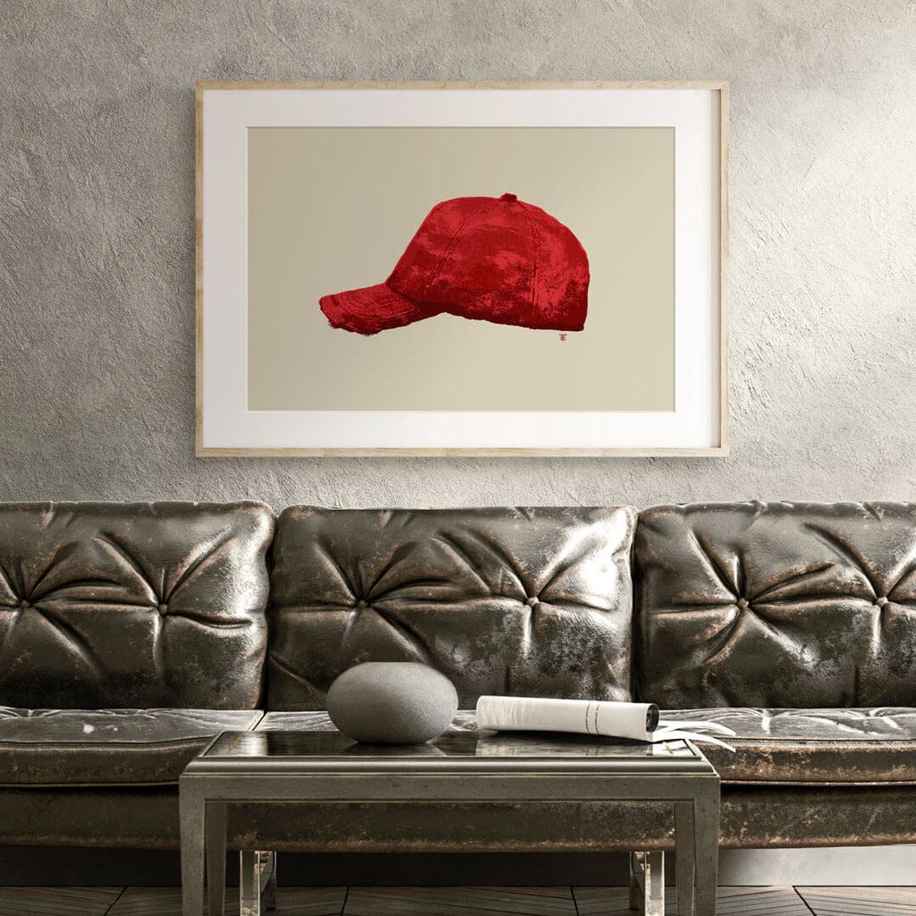 This old baseball cap has seen its share of wins and losses. It's been thrown on the ground in frustration, and thrown in the air in triumph. It's sat on the bench, but it's also slid across home plate at the bottom of the ninth. Without getting too sentimental on you, I think it represents life. This stylish art print of an old red baseball cap is here to bring the wisdom of the ball field into your kid's room, locker room, game room, or man cave.