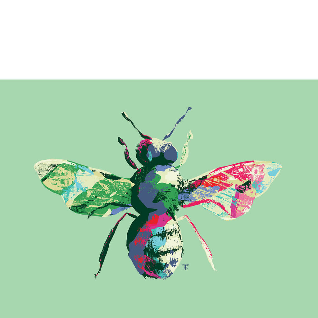 What could be more elegant a form than a honey bee? In this bee print, I explored vivid color combinations and put them together with the insect's classic, even regal form. It's somewhat reminiscent of the Napoleonic Bee, and will bring an elegant flourish to your space.
