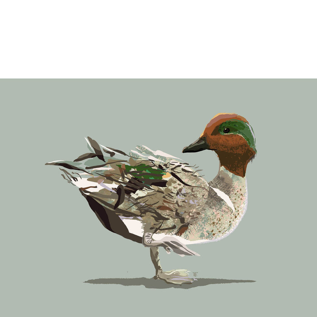 This green-winged teal duck print is here to bring a fresh take on hunting art to your lake house, masculine home office, or nursery. Its gentle hues make it flow seamlessly into updated yet classic decor.