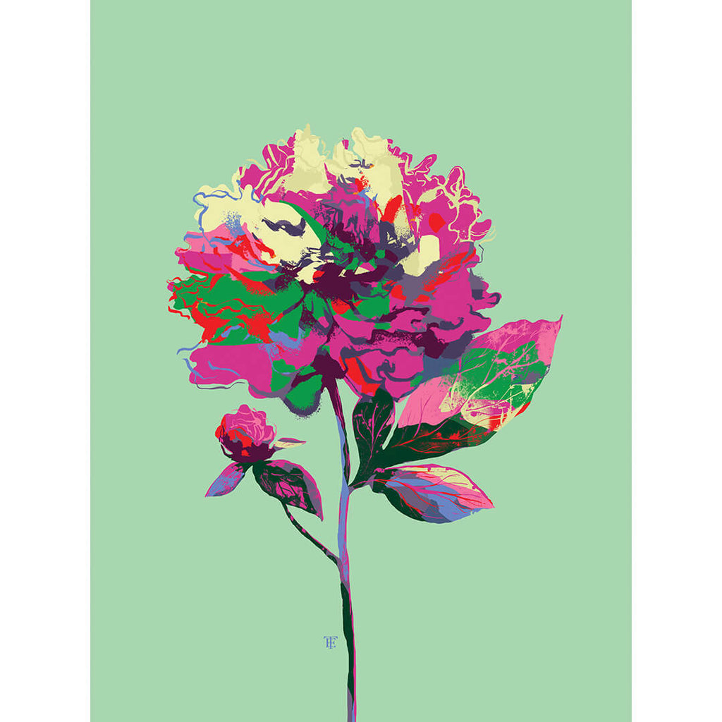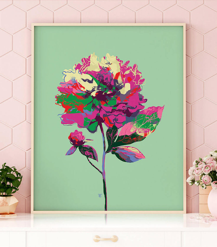 Is there any flower that's more beautiful, more effortlessly fancy than a peony? Bring a little chinoiserie-inspired loveliness into your decor with this modern peony art print in colorful mint greens and brilliant magentas.
