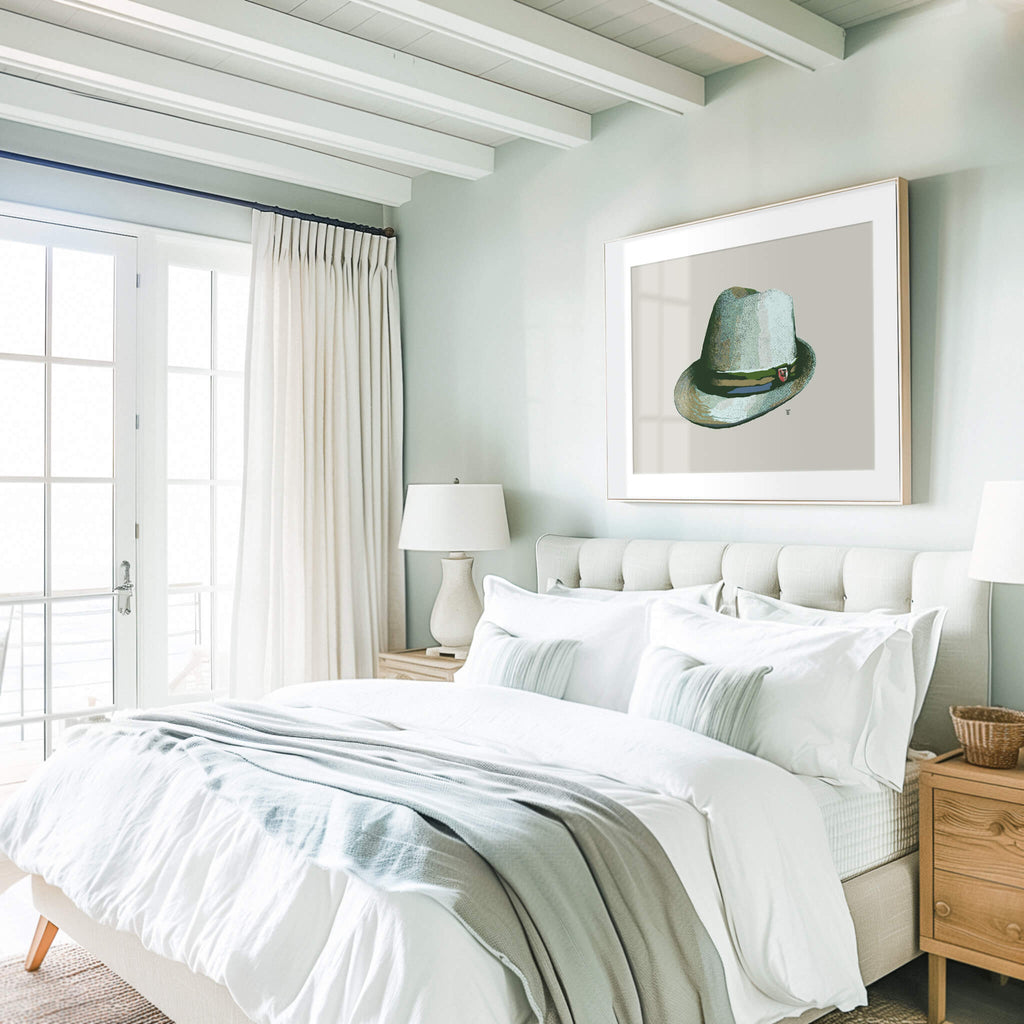 You can’t wear a straw trilby hat every day. Well, I guess you could, but then it wouldn’t be special. It says “I’m relaxing today, thanks, and my email is set to auto-reply.” I created this coastal-hued art print of a trilby beach hat to bring seashore vibes into your space.