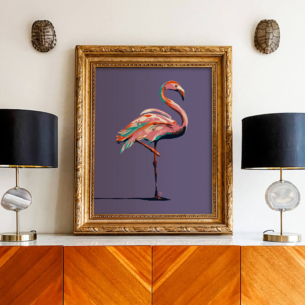 I don't know how these birds stay so preened, each pink feather coiffed to perfection. I love the timeless elegance of the flamingo, and making this modern flamingo art print gave me the chance to admire this extraordinary bird in all its tropical glory. I hope this piece connects you to a landscape of lush abundance.