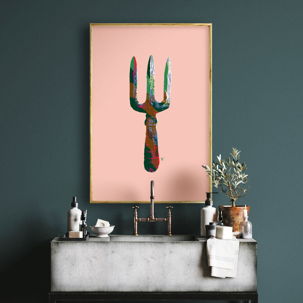 I made this modern gardening fork art print for anyone who loves the smell of the earth in the springtime, the feeling of cool dirt in their hands, and the satisfaction of making a beautiful garden.